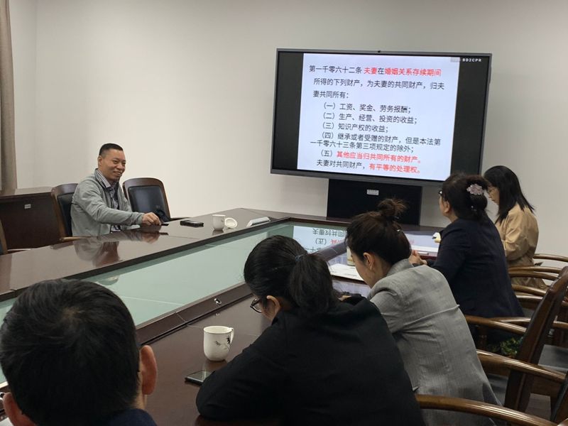 本次學(xué)習(xí)結(jié)合學(xué)院實(shí)際及職工需要,院黨委誠邀史良法學(xué)院沈旭紅老師,主要針對婚姻法中夫妻共同財(cái)產(chǎn)的認(rèn)定及保護(hù)夫妻合法權(quán)益方面做了專項(xiàng)講座。此講座反響良好,有講、有問、有答,工會干部們邊聽講座邊向沈老師提問,沈老師也逐一解答了大家的問題。氣氛非常熱烈。大家一致認(rèn)為,可以進(jìn)一步擴(kuò)大講座范圍,使更多的教職員工受益。