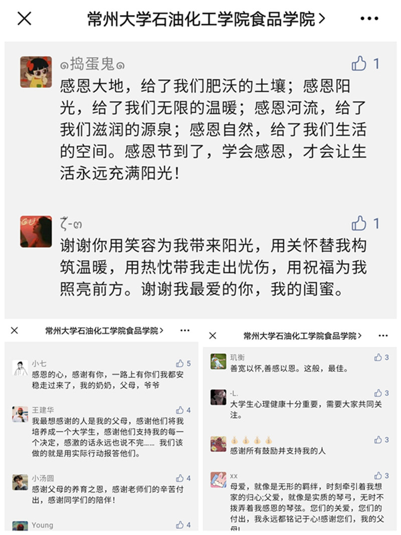 5月12日至16日期間,開展“感謝有你”主題活動。同學們通過班級團建歌唱感恩歌曲,觀看感恩影片,以及在官微下方評論的活動,學會感恩他人,感恩自己,感恩社會,讓生活變得向上而又多彩。