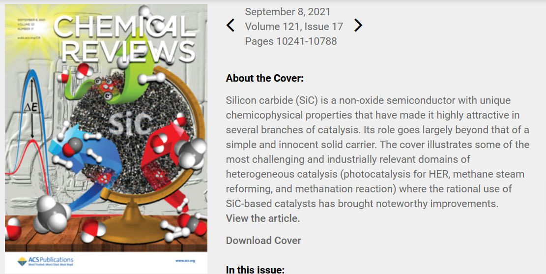 近日,郭向云教授應(yīng)邀與意大利國家研究委員會(huì)、中科院大連化學(xué)物理研究所、SICAT公司、法國國家科研中心等研究人員合作撰寫的關(guān)于高比表面積碳化硅催化應(yīng)用的綜述文章“Porous Silicon Carbide (SiC): A Chance for Improving Catalysts or Just Another Active-Phase Carrier?”在化學(xué)領(lǐng)域國際頂級(jí)綜述類雜志Chemical Reviews上作為封面文章發(fā)表。該論文系統(tǒng)地介紹了碳化硅作為催化劑載體在催化領(lǐng)域中的應(yīng)用情況:(1)精細(xì)化學(xué)品合成,如烷烴氧化制烯烴和含氧化合物、不飽和鍵加氫、C-X鍵形成等;(2)燃料制備,如各種液體燃料、天然氣和氫氣;(3)環(huán)境保護(hù)和修復(fù),如水和空氣中有機(jī)污染物的氧化脫除及分解;(4)燃料電池催化劑,如甲醇和乙醇的電氧化、氧氣還原等;(5)光催化過程,如光解水產(chǎn)氫、精細(xì)化學(xué)品光催化合成、有機(jī)污染物降解等;(6)碳化硅復(fù)合物無金屬催化劑等。并就碳化硅催化劑研究中應(yīng)該關(guān)注的重點(diǎn),以及未來發(fā)展趨勢(shì)作了展望。