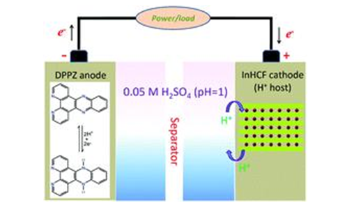 我院曹劍瑜-許娟團(tuán)隊(duì)最近在Chemical Communications上發(fā)表研究論文(DOI: 10.1039/d1cc01486b)。水系可充電電池通常以金屬離子為電荷載體。然而,金屬元素要么儲(chǔ)量有限,要么開采成本相對(duì)較高。在所有離子中質(zhì)子(氫離子)是最輕和最小的,在水溶液中具有最快的遷移速率,而且在地球上資源豐富。本論文設(shè)計(jì)了一種基于有機(jī)陽極和無機(jī)配合物陰極的水系可充電質(zhì)子電池。陽極二吡啶吩嗪中氧化還原活性吡嗪?jiǎn)卧目赡姘坊完帢O銦普魯士藍(lán)中質(zhì)子的快速嵌入-脫嵌使該電池在1 Ag -1下可實(shí)現(xiàn)37 mAhg -1的可逆比容量,并展示了良好循環(huán)穩(wěn)定性和出色的倍率性能。此項(xiàng)研究得到了國(guó)家自然科學(xué)基金和江蘇省綠色催化重點(diǎn)實(shí)驗(yàn)室科學(xué)基金的資助。
