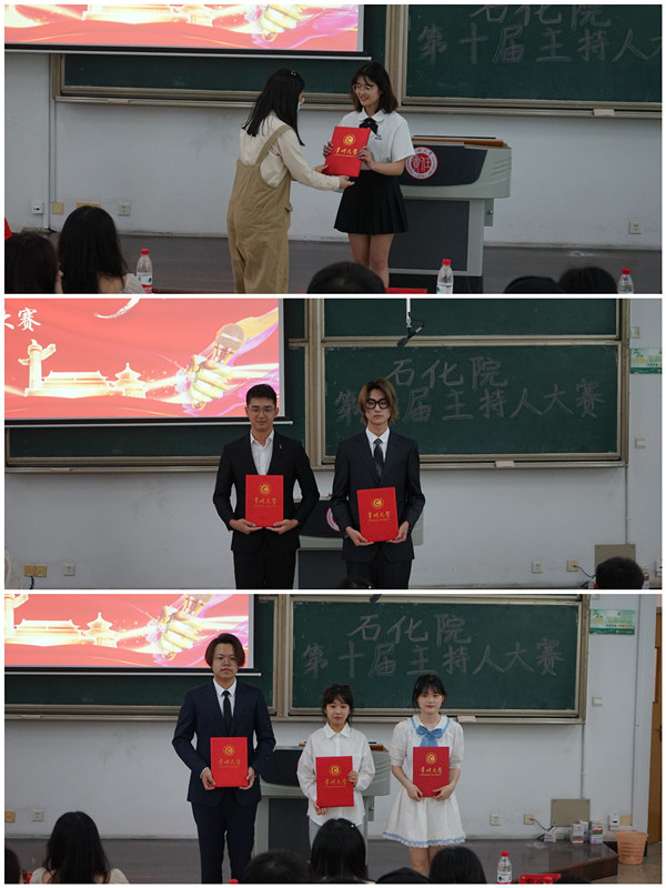 經(jīng)過前期初賽選拔,共六位選手進(jìn)入本次決賽。他們以不同的主題侃侃而談:應(yīng)化212陳閆明宇通過《青年大學(xué)習(xí)家鄉(xiāng)特別版》帶大家認(rèn)識自己的家鄉(xiāng),美麗的海濱城市、浪漫之都——大連;能化211蔡伽豪將老一輩共產(chǎn)黨員為建設(shè)中國共產(chǎn)黨的努力展現(xiàn)得淋漓盡致,希望當(dāng)代青年不斷增強(qiáng)“守初心、擔(dān)使命”的思想意識和行動自覺;作為美食主播,能化212張厚盛通過《舌尖上的美味——廣西篇》呈現(xiàn)給大家有著飲食王國的美譽(yù)的中國美食文化;化工215郭慧慧帶大家認(rèn)識了一位網(wǎng)紅,她將讀書之氣帶給我們,點(diǎn)點(diǎn)星火傳出了她自己的光芒;食品211李欣宇基于《送你一朵小紅花》這部電影,倡導(dǎo)愛與珍惜;化工214李芝穎由藝術(shù)鑒賞帶大家走進(jìn)故事背后的真相,了解一段有關(guān)中國文化征服西方世界的長達(dá)八百年的歷史。在即興評述的環(huán)節(jié),六位選手現(xiàn)場抽取自己的主題,以優(yōu)秀的表現(xiàn)、沉穩(wěn)的心態(tài)充分展示自己的主持功底。最終,化工215郭慧慧榮獲一等獎;能化212張厚盛、應(yīng)化212陳閆明宇榮獲二等獎;能化211蔡伽豪、食品211李欣宇、化工214李芝穎榮獲三等獎。