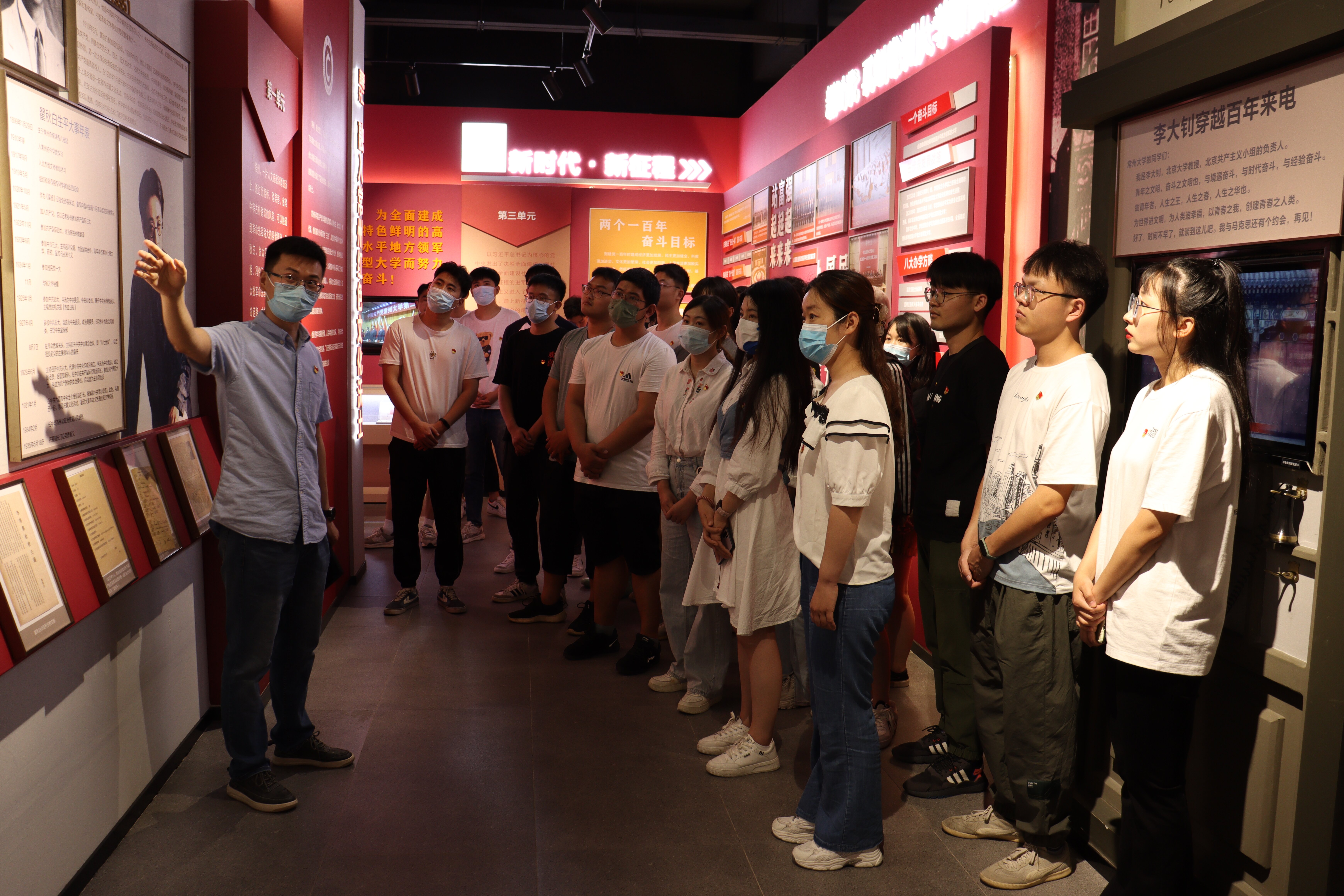 常大紅館以“紅色融入·鑄魂育人”為陳列主題,展列內(nèi)容分為“融入新時代”、“融入常州紅色文化沃土”、“融入常州大學文化傳承特色”三個板塊。張雷老師為大家詳細講解了各類展品、圖片、文物背后的故事,深刻闡釋了習近平新時代中國特色社會主義思想,與大家分享了瞿秋白、張?zhí)?、惲代英等革命先烈的偉大事跡,并介紹了常州大學的發(fā)展歷程、辦學理念和發(fā)展目標。在此期間,同學們還親身體驗了“張伯苓愛國三問”、“李大釗穿越百年來電”、“穿越常大40年VR騎行漫游”等互動交流項目。最后,同學們觀看了常州大學校史紀錄片,并合影留念。