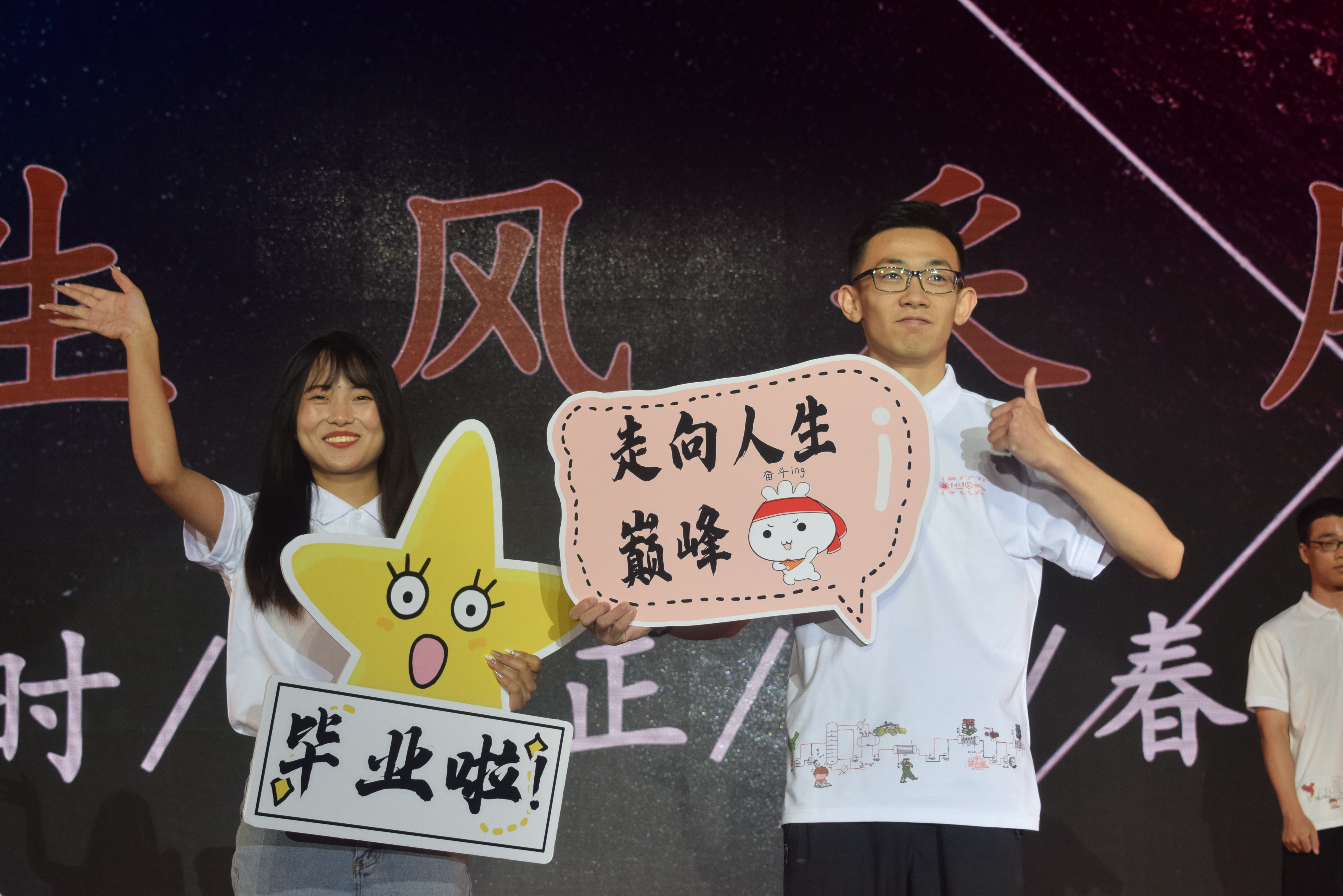 “四年師友昨日成追憶,千里之行今朝正起航?!碑厴I(yè)小劇場環(huán)節(jié),優(yōu)秀畢業(yè)生展示了他們青春的風采,歌曲串燒點燃了大家的熱情,詩朗誦《夢駐芳華,云憶石化》傾訴了對母校的不舍。最后,全體畢業(yè)生揮舞雙手,合唱畢業(yè)歌《仍是石化少年》,所有的留戀、感激、祝福、憧憬和期盼都蘊藏在歌詞旋律中。祝福2022屆畢業(yè)生前程似錦。