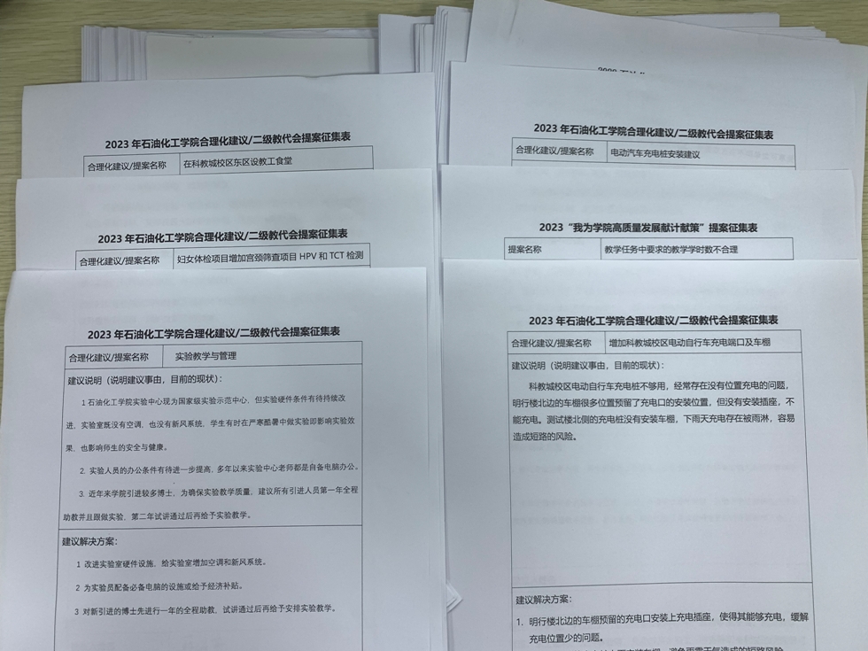 為配合2023年學(xué)院二級教代會的召開,石油化工學(xué)院分工會在全院教職工中繼續(xù)開展有獎?wù)骷昂侠砘ㄗh”的活動。