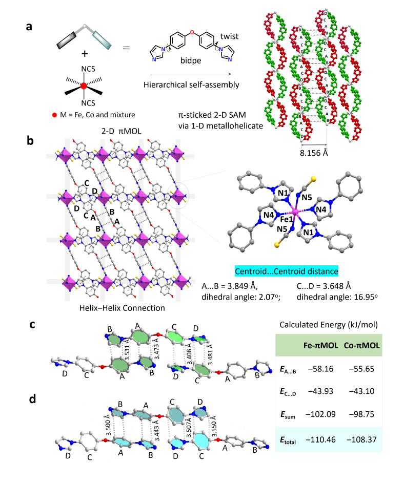 由于原子利用率的提高和結(jié)構(gòu)明確的電子轉(zhuǎn)移過程,用于構(gòu)建先進(jìn)催化材料的二維金屬有機(jī)層(MOL)的層級(jí)自組裝引起了人們的極大興趣。然而,通過層級(jí)自組裝過程構(gòu)建具有單層/少層厚度的原子級(jí)精確的光催化材料,仍然是一個(gè)重要挑戰(zhàn),主要是因?yàn)閭鹘y(tǒng)的非共價(jià)相互作用難以控制復(fù)雜的長(zhǎng)程有序過程。近日,常州大學(xué)石油化工學(xué)院吳大雨教授團(tuán)隊(duì),成功構(gòu)建了自組裝單層π粘附二維框架材料(Fe/Co/FeCo-πMOL),作為高效的原子級(jí)催化劑,以期實(shí)現(xiàn)碳資源的高效利用和溫室氣體的轉(zhuǎn)化。相關(guān)研究工作以題為“π-Sticked Metal?Organic Monolayersfor Single-Metal-Site Dependent CO2 Photoreduction and Hydrogen Evolution Reaction”發(fā)表在材料科學(xué)領(lǐng)域頂級(jí)期刊Small(DOI: 10.1002/smll.202309194)。