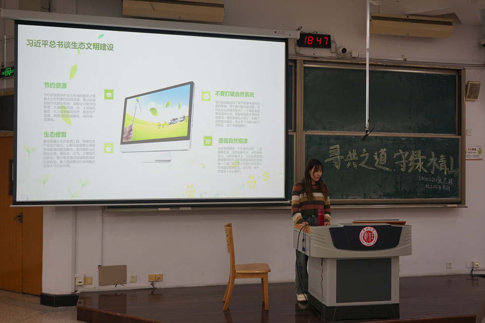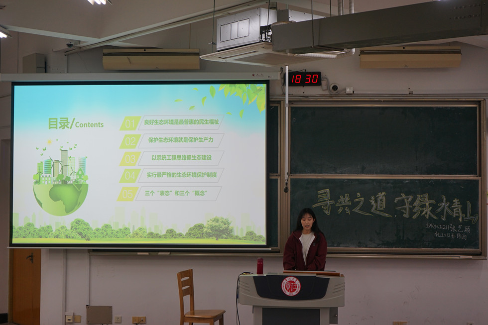 為弘揚生態(tài)文明理念,建設(shè)綠色家園,我院于4月24日在W20舉辦“青年講師團”系列講座——“尋共存之道,守綠水青山”。本次講座由我院學(xué)生第一黨支部黨員張藝穎、孫詩雨主講,各年級學(xué)生代表參加。