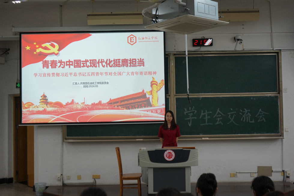為深入學(xué)習(xí)宣傳貫徹習(xí)近平總書(shū)記五四青年節(jié)對(duì)全國(guó)廣大青年寄語(yǔ)精神,深刻感悟理解以習(xí)近平同志為核心的黨中央對(duì)青年和青年工作一以貫之的重視和關(guān)懷,激勵(lì)同學(xué)們勇?lián)鷷r(shí)代使命,不負(fù)韶華。院團(tuán)委學(xué)生會(huì)成員于5月22日在W15開(kāi)展學(xué)習(xí)交流會(huì)。本次活動(dòng)由石化院團(tuán)委副書(shū)記周袁心儀主持,團(tuán)委學(xué)生會(huì)各級(jí)學(xué)生骨干積極參與。