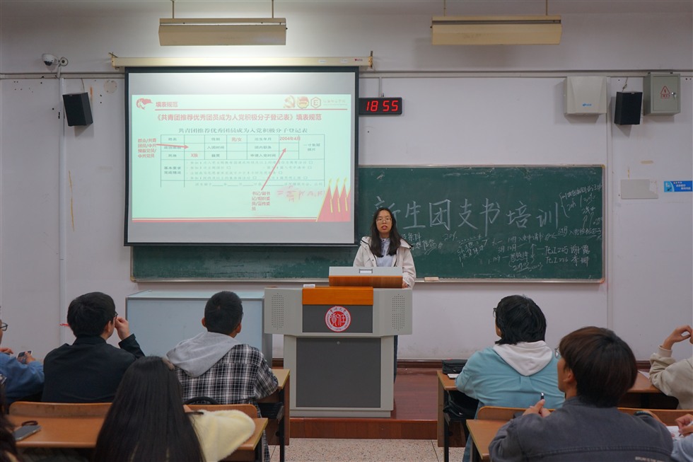 為了加強(qiáng)基層團(tuán)組織建設(shè),提升新生團(tuán)支書(shū)的工作能力,我院于10月31日在W1210教室開(kāi)展新生團(tuán)支書(shū)團(tuán)務(wù)培訓(xùn)工作。本次培訓(xùn)由團(tuán)委副書(shū)記化工225謝露、化工226李娜主講,2024級(jí)各班團(tuán)干參加。