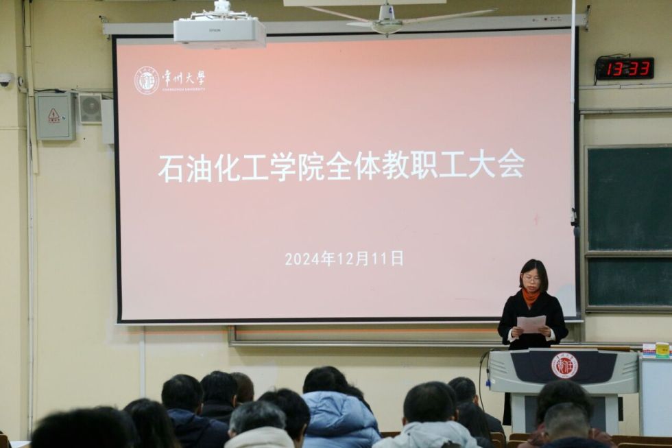 12月11日下午,石油化工學(xué)院在教學(xué)樓W6階召開2024年教職工大會暨學(xué)院工會會員大會,學(xué)院黨政領(lǐng)導(dǎo)、分工會主席以及全體教職工參加會議,黨委副書記劉國仕主持會議。