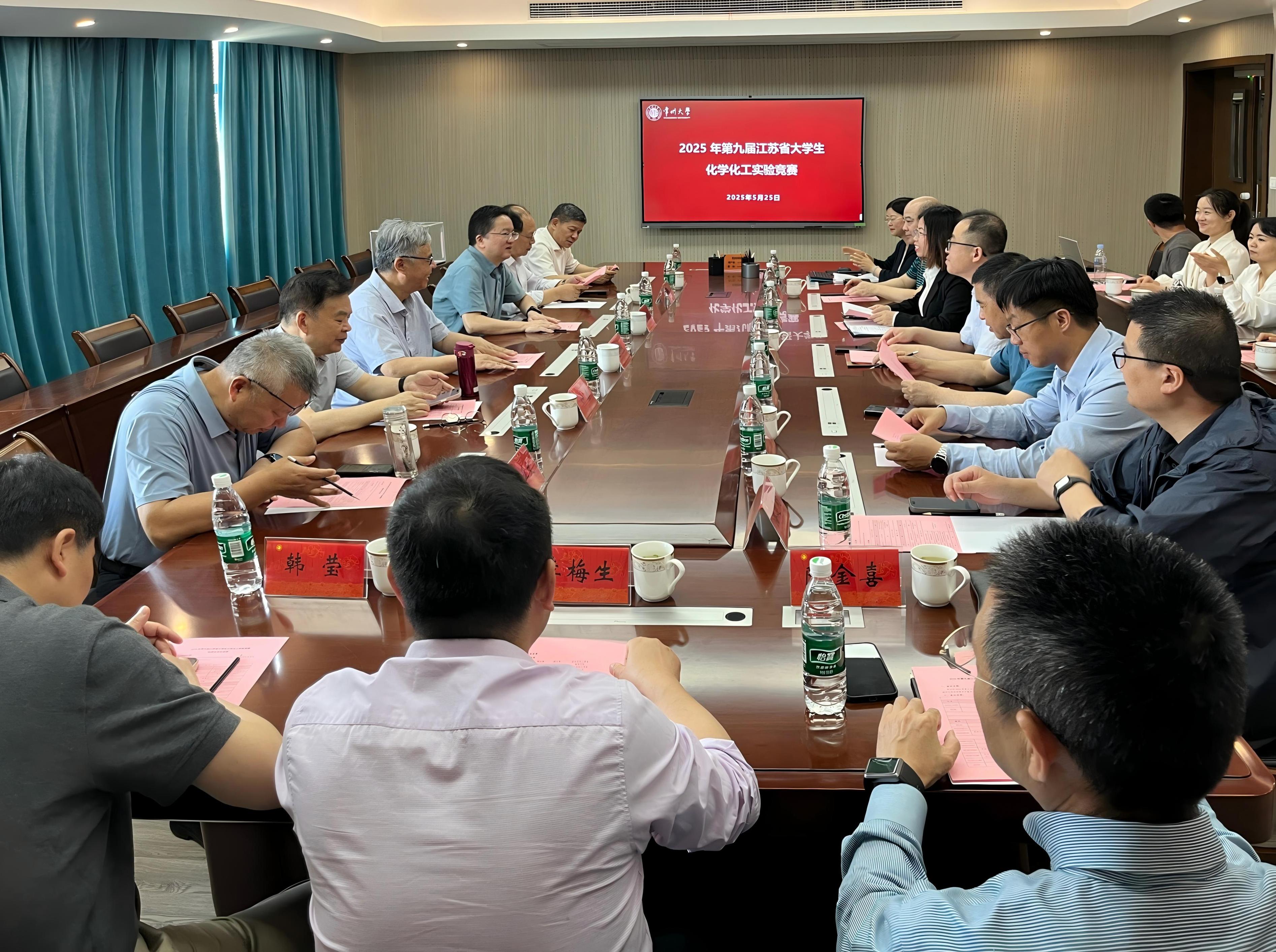 5月25日上午,第九屆江蘇省化學(xué)化工實(shí)驗(yàn)競(jìng)賽組委會(huì)會(huì)議在我院召開。組委會(huì)副主任江蘇省化學(xué)化工實(shí)驗(yàn)教學(xué)示范中心聯(lián)席會(huì)主席、南京大學(xué)教授張劍榮,江蘇省化學(xué)化工學(xué)會(huì)副理事長(zhǎng)兼秘書長(zhǎng)陳立來,江蘇省化學(xué)化工學(xué)會(huì)副秘書長(zhǎng)、江蘇大學(xué)教授朱衛(wèi)華;組委會(huì)成員江南大學(xué)教授劉仁,淮陰師范學(xué)院教授李梅生,南京工業(yè)大學(xué)教授楊文忠,南京理工大學(xué)教授鐘秦,南京師范大學(xué)教授唐亞文,江蘇大學(xué)教授潘建明以及相關(guān)高校的多位領(lǐng)導(dǎo)出席。常州大學(xué)黨委常委、副校長(zhǎng)周剛,石油化工學(xué)院副院長(zhǎng)(主持工作)劉平,石油化工學(xué)院副院長(zhǎng)黃薇以及會(huì)務(wù)組成員代表參加本次會(huì)議。會(huì)議由劉平主持。