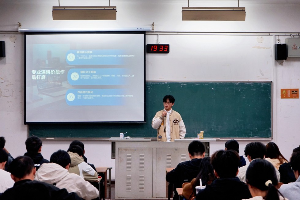 兩位同學(xué)從學(xué)業(yè)、競賽、實踐三者的平衡關(guān)系入手,針對新生普遍存在的“迷茫期”問題,提出了貫穿大學(xué)四年的分階段規(guī)劃建議。鼓勵新生做好學(xué)業(yè)規(guī)劃,勇于爭先。本次講座為同學(xué)們提供了豐富的經(jīng)驗參考與實用的方法指導(dǎo),有助于大家進一步明確未來方向、增強規(guī)劃意識。