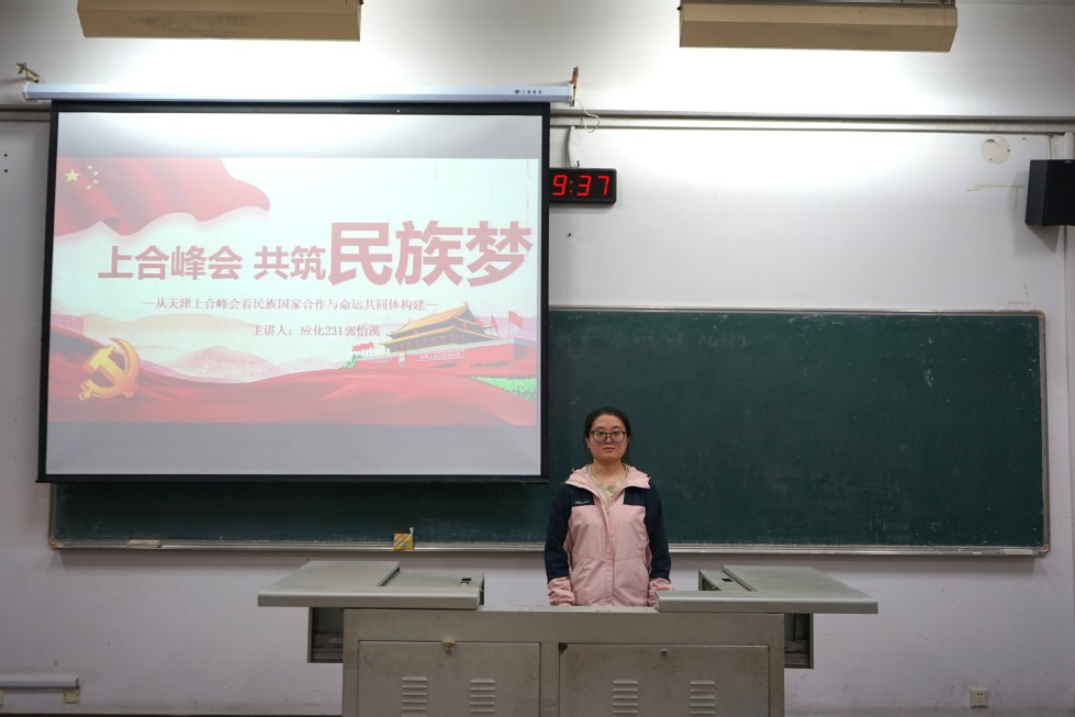 10月28日晚,我院于W1201教室成功舉辦“青年講師團”系列講座第二講——“上合峰會,共筑民族夢”。本次講座由第二學生黨支部黨員應化231班郭怡溪擔任主講。