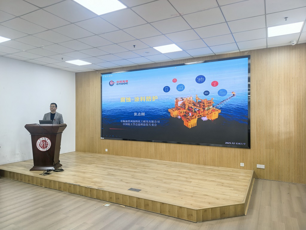 2025年12月18日,中海油常州涂料化工院腐蝕治理首席工程師狄志剛、涂料與防護(hù)工程研究院主任周如東應(yīng)邀為我院師生作學(xué)術(shù)報(bào)告,石油化工學(xué)院黨委書記業(yè)緒華、院長(zhǎng)劉平、學(xué)院骨干教師和研究生代表現(xiàn)場(chǎng)參會(huì)。報(bào)告會(huì)由劉平主持。