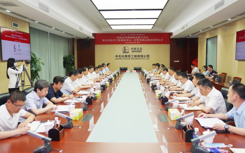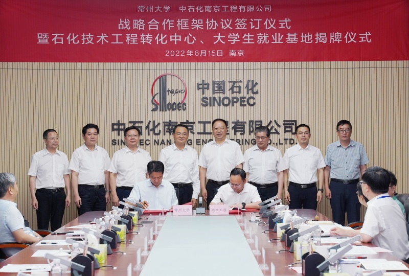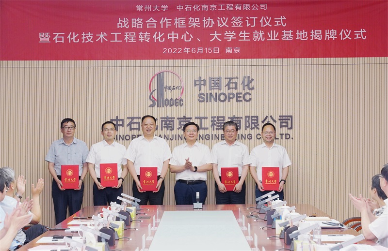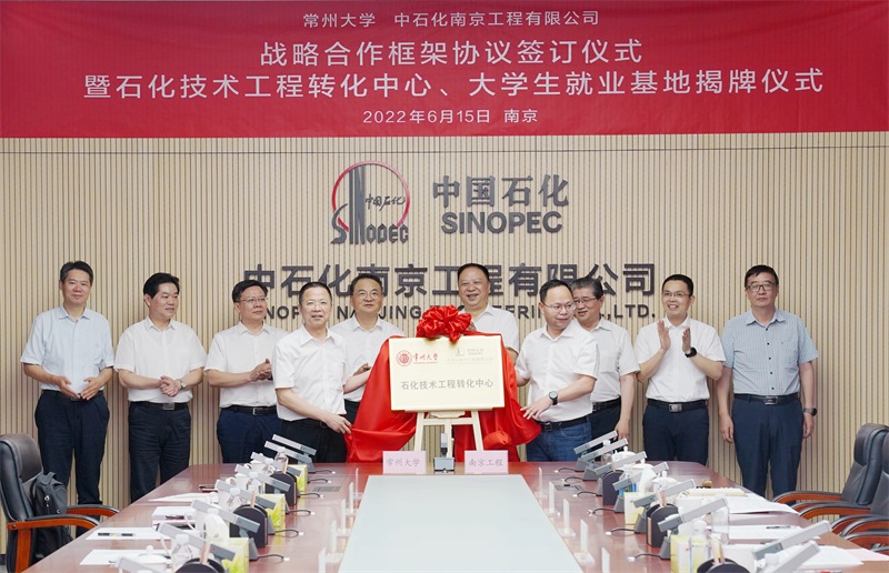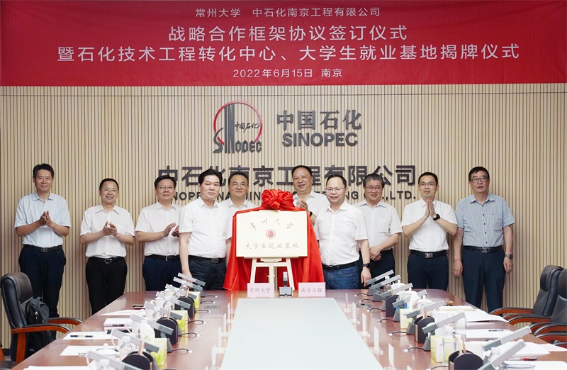 | 中石化南京工程有限公司與常州大學(xué)戰(zhàn)略合作協(xié)議簽訂儀式暨石化技術(shù)工程轉(zhuǎn)化中心、大學(xué)生就業(yè)基地揭牌儀式在南京舉行 |