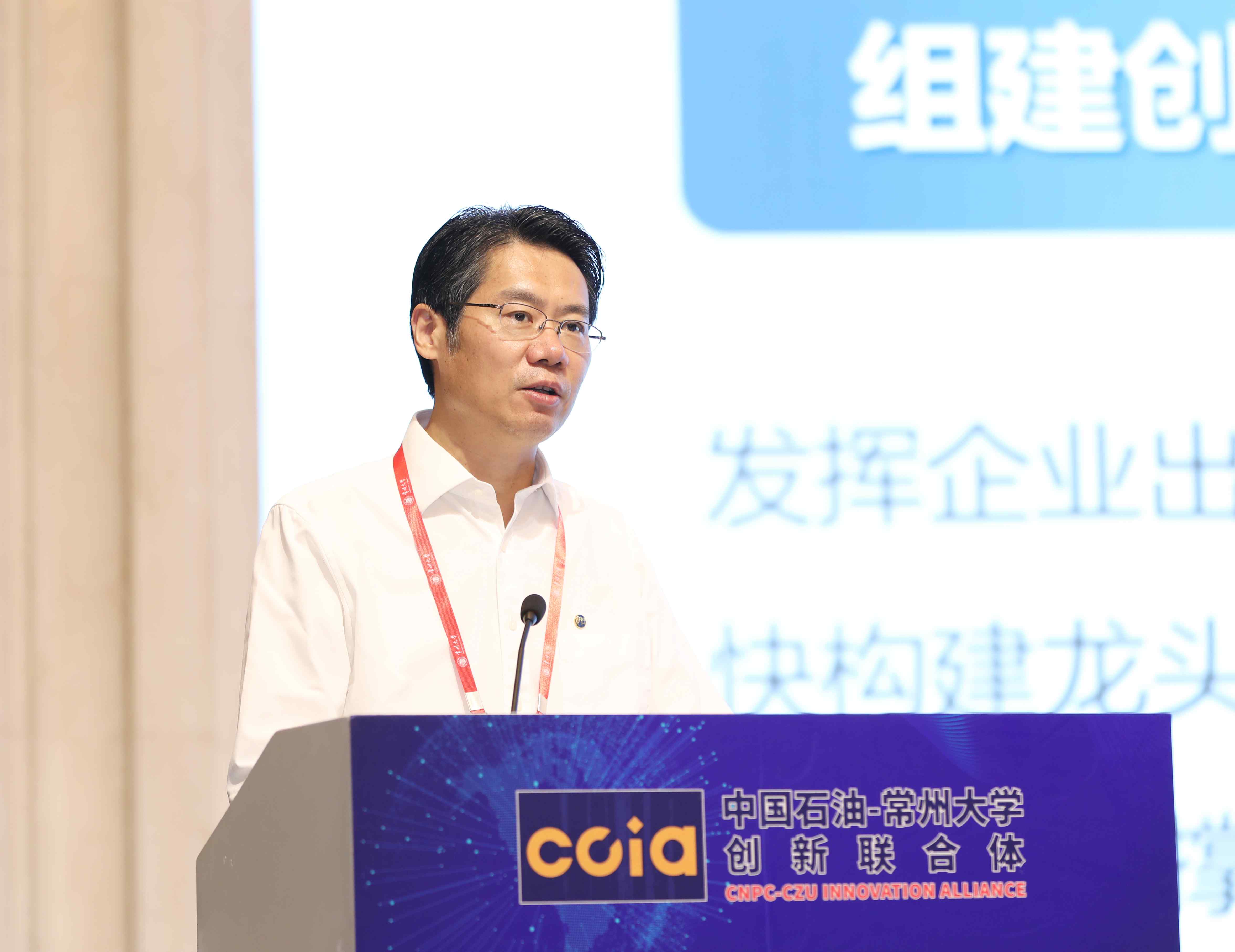 陳群致辭 杜吉洲回顧了中國石油與常州大學(xué)幾十載歲月的密切聯(lián)系。他表示,雙方同呼吸、共命運,攜手共進(jìn)、砥礪前行,常州大學(xué)是向中國石油輸送人才的“搖籃”,中國石油也是常州大學(xué)成果產(chǎn)出的“沃土”,雙方已成為相依相靠、相伴相隨的命運共同體,攜手構(gòu)建企校新型“產(chǎn)學(xué)研用”科技創(chuàng)新模式,共同打造具有行業(yè)引領(lǐng)力和學(xué)術(shù)創(chuàng)造力的創(chuàng)新聯(lián)合體,標(biāo)志著企校的合作又邁上了意義非凡的新臺階。他高度認(rèn)可常州大學(xué)創(chuàng)新聯(lián)合體一年多來的建設(shè)工作,認(rèn)為創(chuàng)新聯(lián)合體建設(shè)指導(dǎo)思想、總體定位與目標(biāo)、組織架構(gòu)、運行機制和項目研究目標(biāo)及預(yù)期成果更加清晰明確,希望創(chuàng)新聯(lián)合體各成員單位在“創(chuàng)新、協(xié)調(diào)、綠色、開放、共享”新發(fā)展理念指引下,繼續(xù)攻堅克難,加強溝通交流,突出成果實效,抓住機遇,迎接挑戰(zhàn),敢闖敢試,勠力同心,勇當(dāng)國家戰(zhàn)略科技力量、建設(shè)能源與化工創(chuàng)新高地,為中國石油建設(shè)基業(yè)長青的世界一流企業(yè)貢獻(xiàn)科技力量,為石油行業(yè)的創(chuàng)新發(fā)展做出新的更大貢獻(xiàn)。