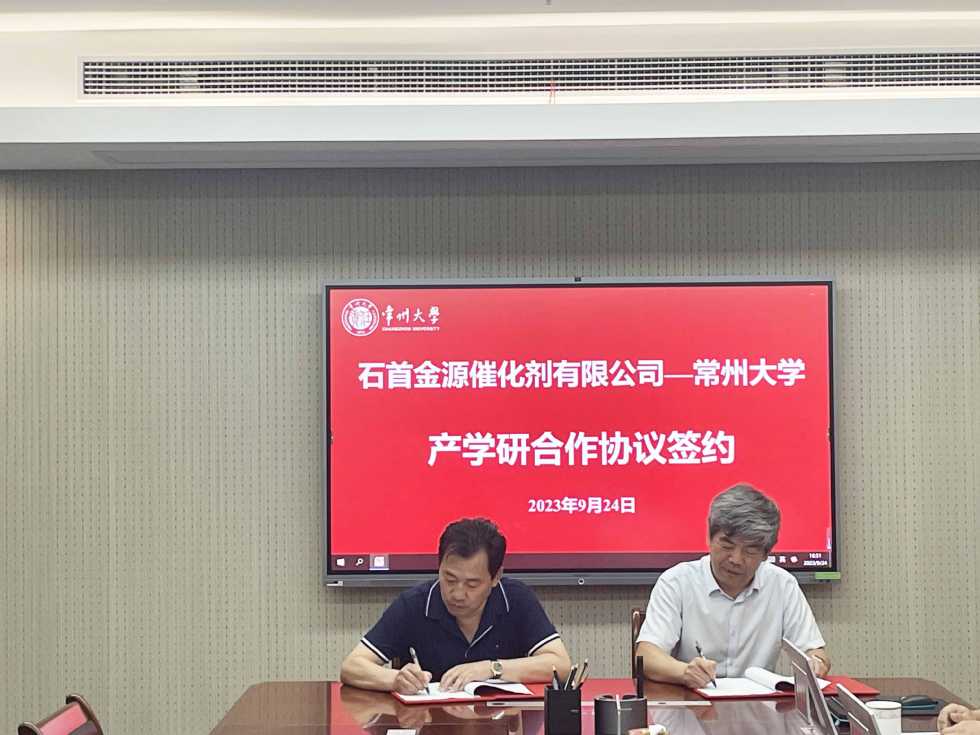 | 石首金源催化劑有限公司—常州大學(xué)產(chǎn)學(xué)研合作協(xié)議簽約暨聯(lián)合實(shí)驗(yàn)室揭牌儀式成功舉行 |