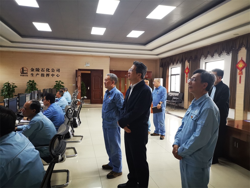 會(huì)前,徐守坤一行參觀了金陵石化公司生產(chǎn)指揮中心。