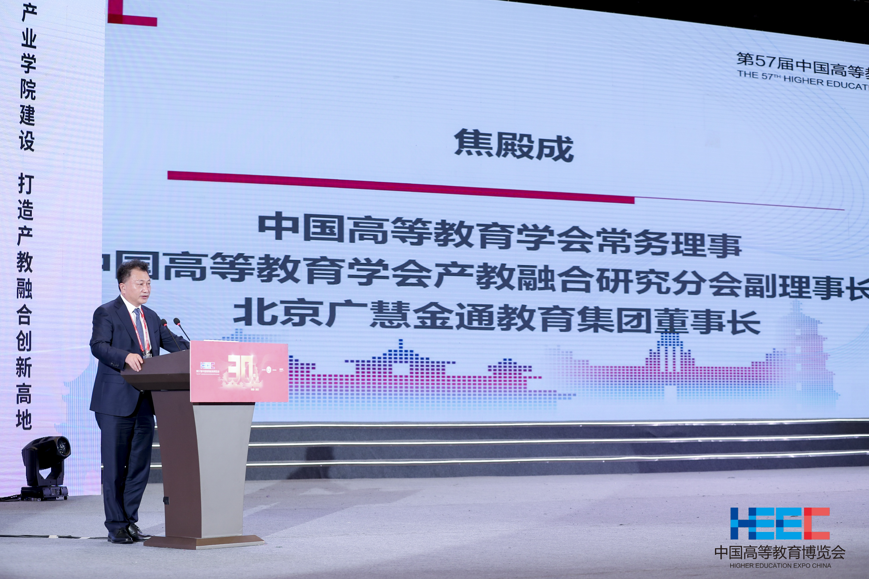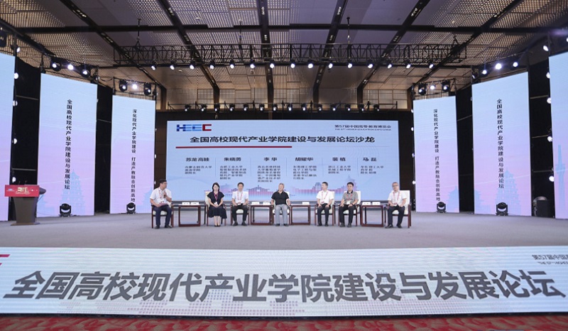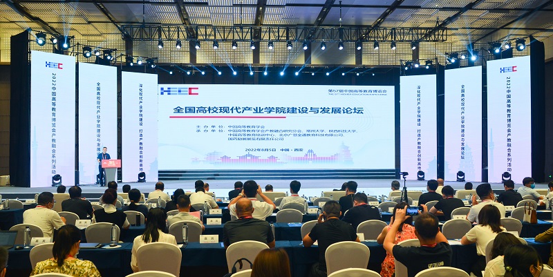 為學(xué)習(xí)貫徹習(xí)近平新時代中國特色社會主義思想,全面落實(shí)全國教育大會及相關(guān)文件精神,加快推進(jìn)全國高?,F(xiàn)代產(chǎn)業(yè)學(xué)院建設(shè)與發(fā)展,積極打造現(xiàn)代產(chǎn)業(yè)學(xué)院建設(shè)示范高地,8月5日上午,由中國高等教育學(xué)會主辦,中國高等教育學(xué)會產(chǎn)教融合研究分會、常州大學(xué)、陜西科技大學(xué)、中國高等教育培訓(xùn)中心、北京廣慧金通教育科技有限公司、國藥勵展展覽有限責(zé)任公司承辦的全國高?,F(xiàn)代產(chǎn)業(yè)學(xué)院建設(shè)與發(fā)展論壇在西安國際會展中心舉行。該論壇為第57屆中國高等教育博覽會系列論壇之一,來自全國高校的500余名代表參加線下會議,近四萬人觀看線上論壇直播。