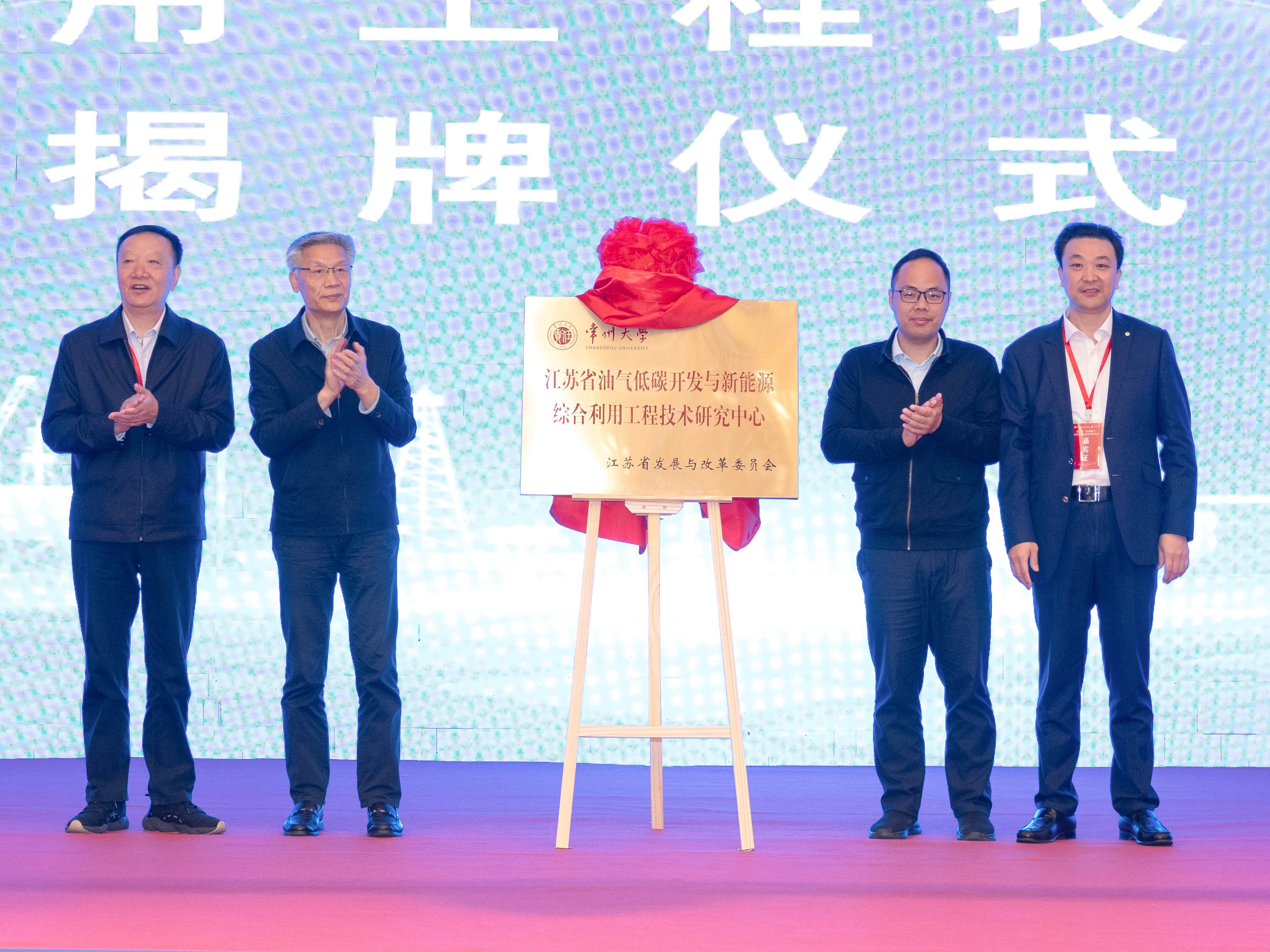 活動中,領(lǐng)導(dǎo)專家為“江蘇省重點(diǎn)產(chǎn)業(yè)學(xué)院—能源低碳信創(chuàng)產(chǎn)業(yè)學(xué)院”“江蘇省油氣低碳開發(fā)與新能源綜合利用工程技術(shù)中心”揭牌。