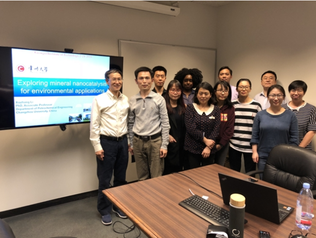 受國(guó)家自然科學(xué)基金與江蘇省國(guó)際合作項(xiàng)目資助,2018年1-2月,我室教師李霞章副研究員赴美國(guó)特拉華大學(xué)進(jìn)行短期科研合作,期間受該校先進(jìn)電子顯微中心主任Ni Chaoying教授邀請(qǐng),作了題為“Mineral-based nanocatalyst for environmental applications”的學(xué)術(shù)報(bào)告,另外還受佐治亞理工學(xué)院Chen Yongsheng教授邀請(qǐng),赴該校做了題為 “Exploring mineral nanocatalysis for environmental applications”的學(xué)術(shù)報(bào)告,介紹了近年來團(tuán)隊(duì)成員在新型納米礦物材料的構(gòu)建及環(huán)境催化應(yīng)用領(lǐng)域取得的相關(guān)成果以及最新進(jìn)展,并與兩校相關(guān)課題組的師生進(jìn)行了深入的探討與交流。通過學(xué)術(shù)報(bào)告,增進(jìn)了雙方研究方向的了解,達(dá)成了進(jìn)一步合作的意向,提升了我院國(guó)際學(xué)術(shù)交流合作水平。